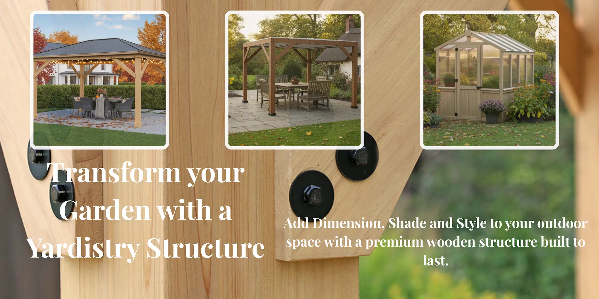 Yardistry Direct UK brings premium cedar gazebos, pergolas, and greenhouses to homes across the country. We build to last, engineered for British weather, and available nationwide through trusted retailers including B&Q and The Range. Choose DIY assembly or enjoy peace of mind with our professional installation service.