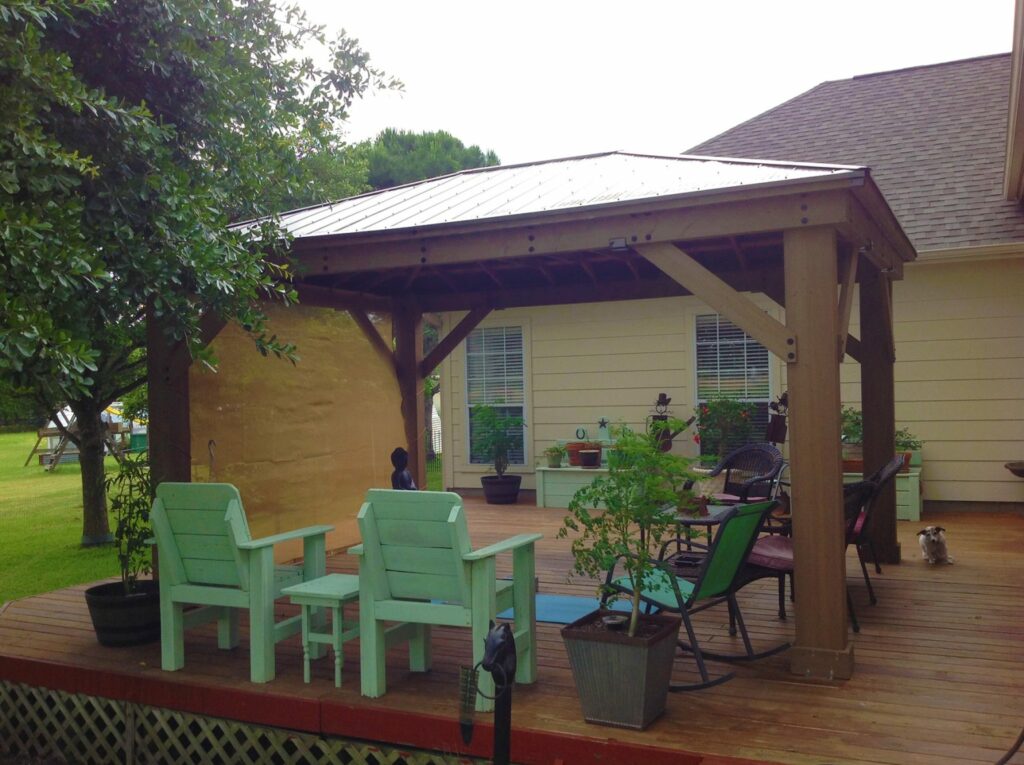 “Firstly I started putting all the pieces together, the posts and beams up went up and fastened to the deck. Secondly, I put all the roof panels together. Lastly, with a little help from a temporary beam and a temporary support post, l got all four of the roof panels up and finished the project”.