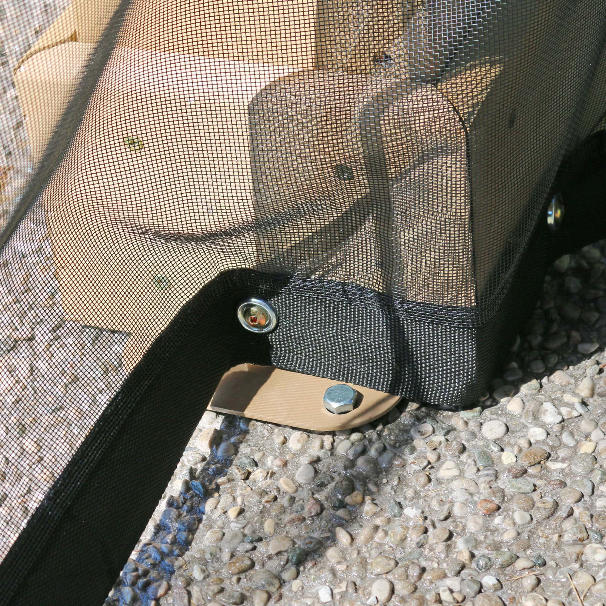 - Ties in each corner to hold the mesh back when not in use