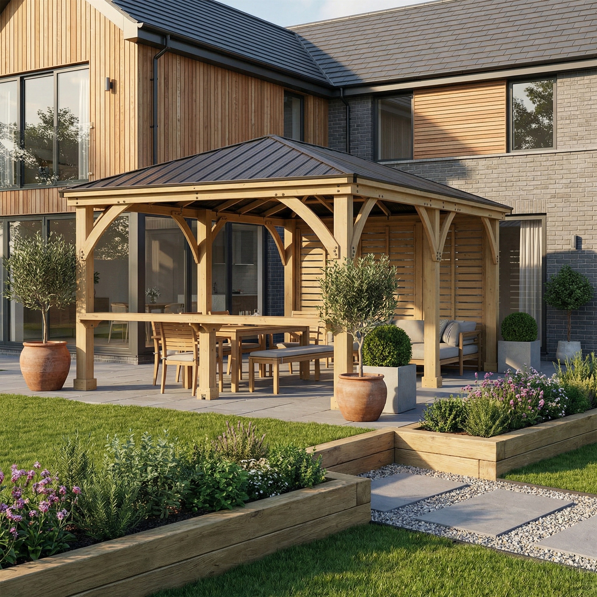 A spacious, architectural centrepiece designed for entertaining, dining, and year‑round outdoor living. For those wanting both function and style, a Large Wooden Gazebo with Side and Counter is an excellent choice. Wall & Wooden Shelf: Enhance Your Outdoor Space for a stylish yet practical addition. In fact, Wall & Wooden Shelf: Enhance Your Outdoor Space is a highly recommended way to update your garden area.