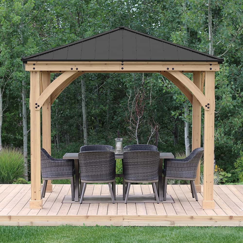 - The Yardistry Wooden Gazebo 10ft x 10ft is built using 100% Cedar Lumber