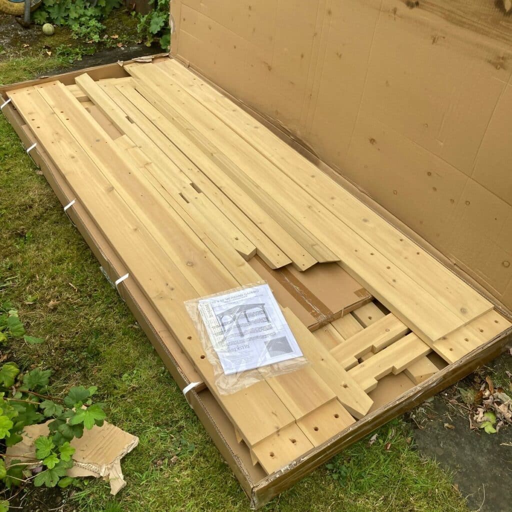 delivery proved difficult for driver as pallet too low. for his pallet truck. One metal section damaged (crushed) but fortunatelyI. managed to repair. Overall we are very happy with the final result
