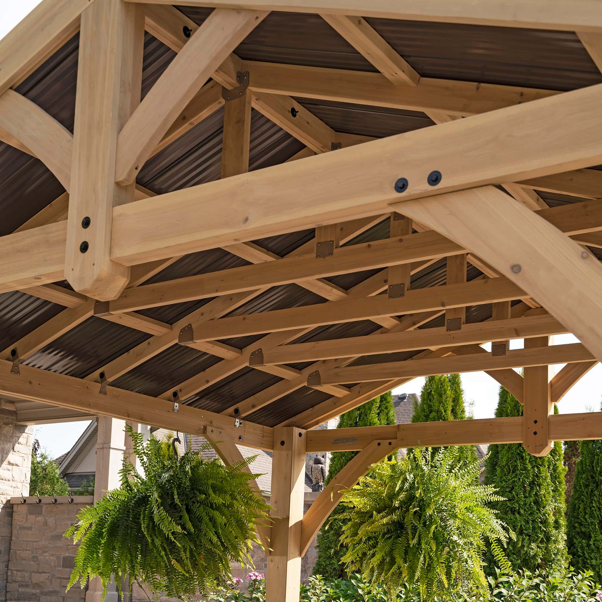 The incredible design features a coffee-brown aluminium roof, sturdy posts, and sleek curved gussets. Built with quality in mind, the Carolina Pavilion is made from 100% cedar lumber. Because it is finished in a natural cedar stain it will bring warmth and a distinctive feel to any outdoor space. Including premium 6-inch square leg dimensions and an external height of 10′ 1″. With interior dimensions of 9’ 10 ½” x 9’ 5 ½”, this outdoor room can accommodate all but the largest furniture sets. The garden structure comes as a ready-to-assemble kit with illustrated step-by-step instructions and a helpful hints video that will guide you through the assembly process. Overall, Yardistry Direct’s Carolina Pavilion is a multi-functional product that will add a sophisticated and modern look to your outdoor space.