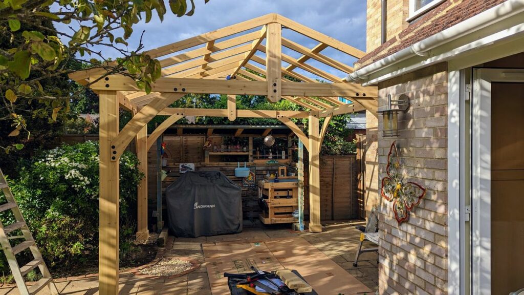 The last two I managed to build the column and beams on my own and only needed help with the roof. I did have to brace the columns in all directions first though. I found it easier to have all pieces in numerical order laid out, and fittings in sizes – as there are hundreds of them – and some very similar.