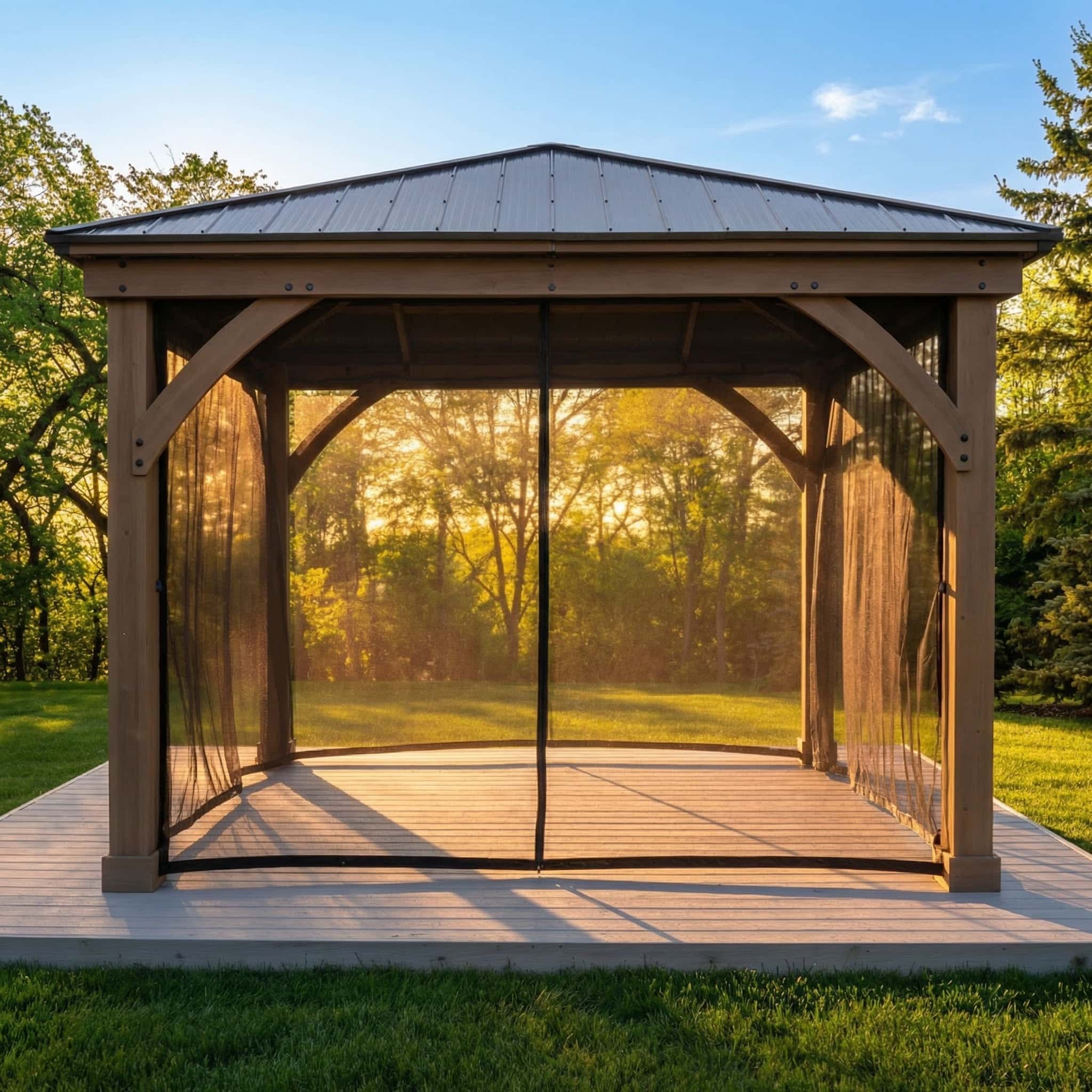 Complete your 12ft x 16ft Gazebo with Aluminium Roof by Yardistry Direct, with the Mesh Kit for Costco 12ft x 16ft. The mesh kit is easily added to your existing 12ft x 16ft Yardistry Direct Gazebo from Costco.