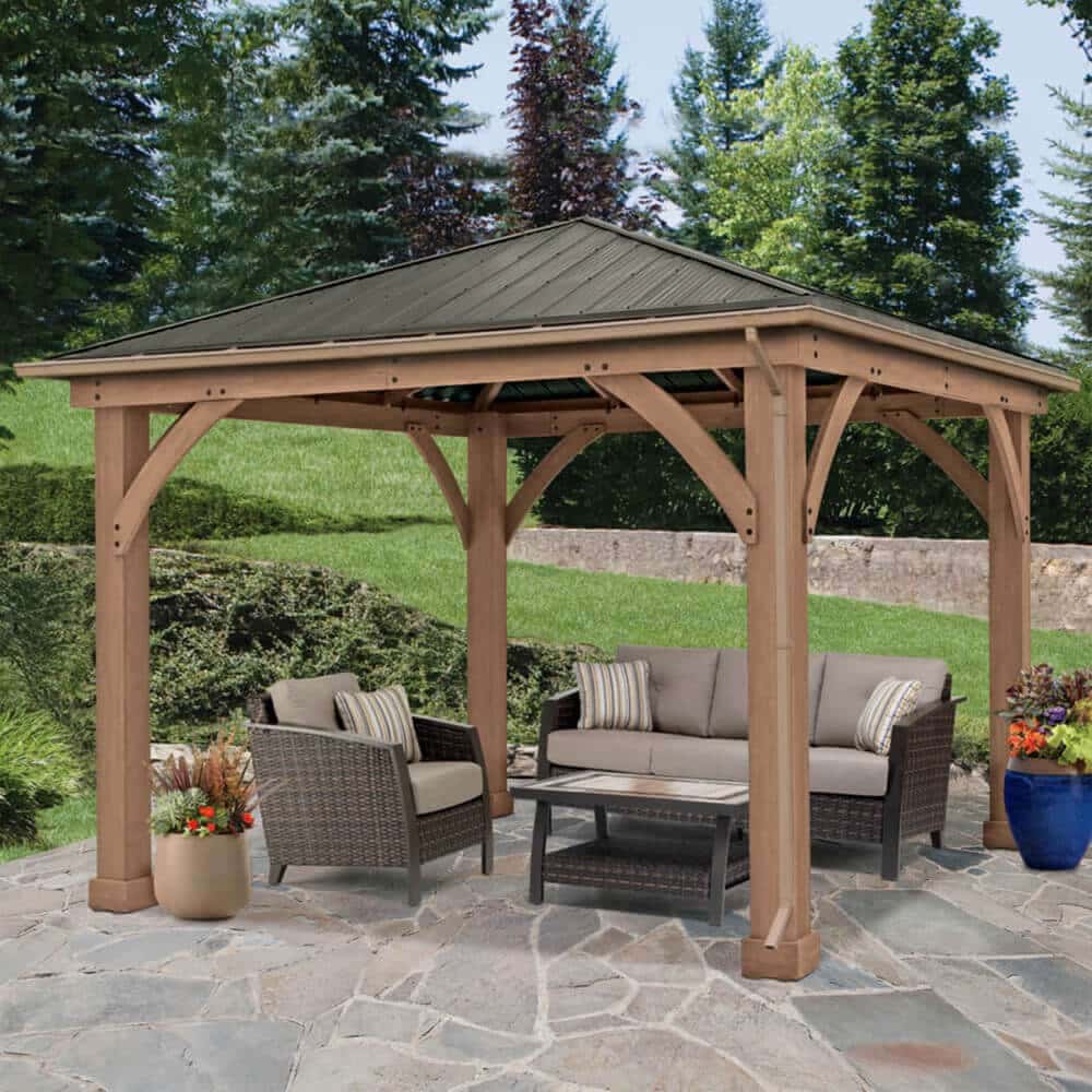 - 12 x 12 Wood Gazebo With Aluminium Roof