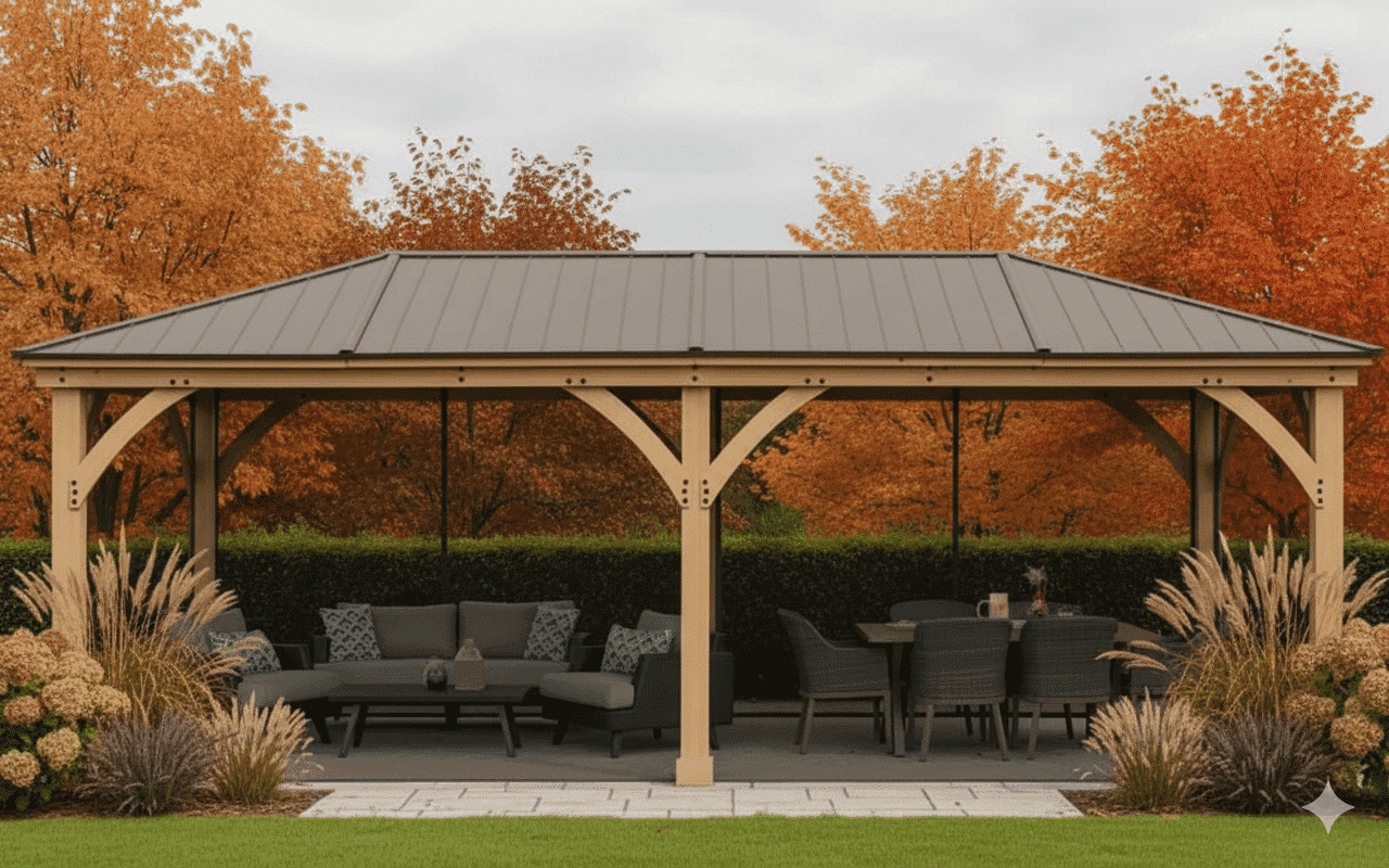 Yardistry Wooden Gazebo 12ft x 20ft (3.7m x 6m) with Mesh Curtains