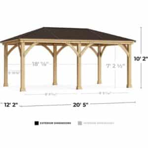 Yardistry Wooden Gazebo 12ft x 20ft (3.7 x 6.2m) with Single Wall