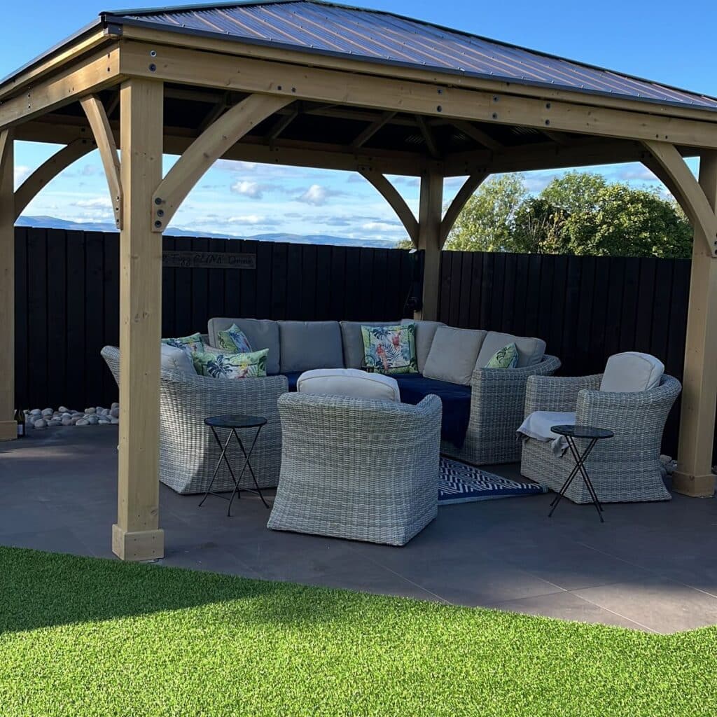 In addition, the generous footprint creates a flexible space for dining, lounging, or entertaining—perfect for families, guests, or quiet moments alone. Meanwhile, the pre-cut, pre-drilled components make assembly straightforward, allowing you to enjoy your new garden centrepiece with minimal fuss.