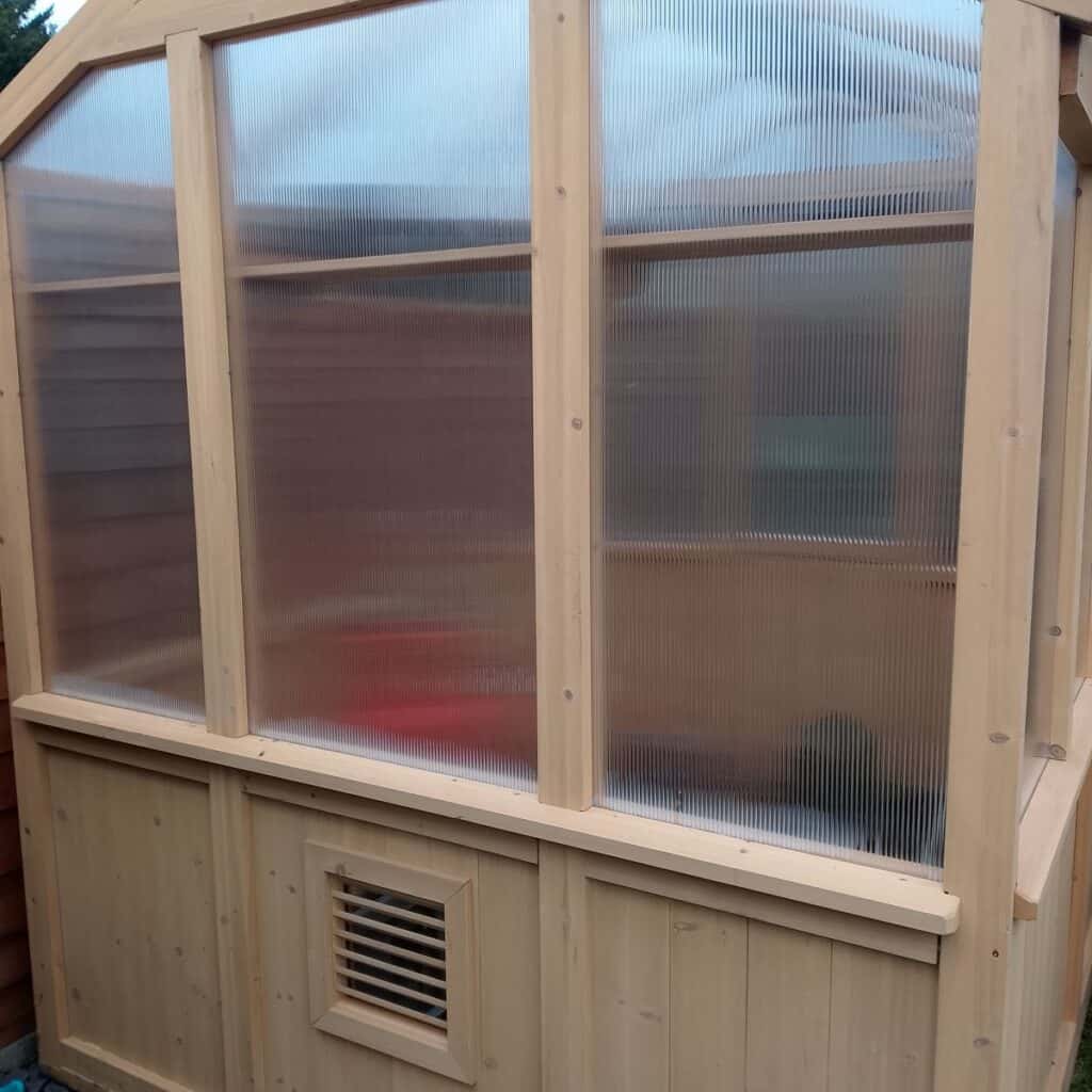 This was really easy to put together and only took a week to build start to finish. I love that the shelves are included and the roof hooks. The automatic window that opens with the temperature is brilliant. Love it!