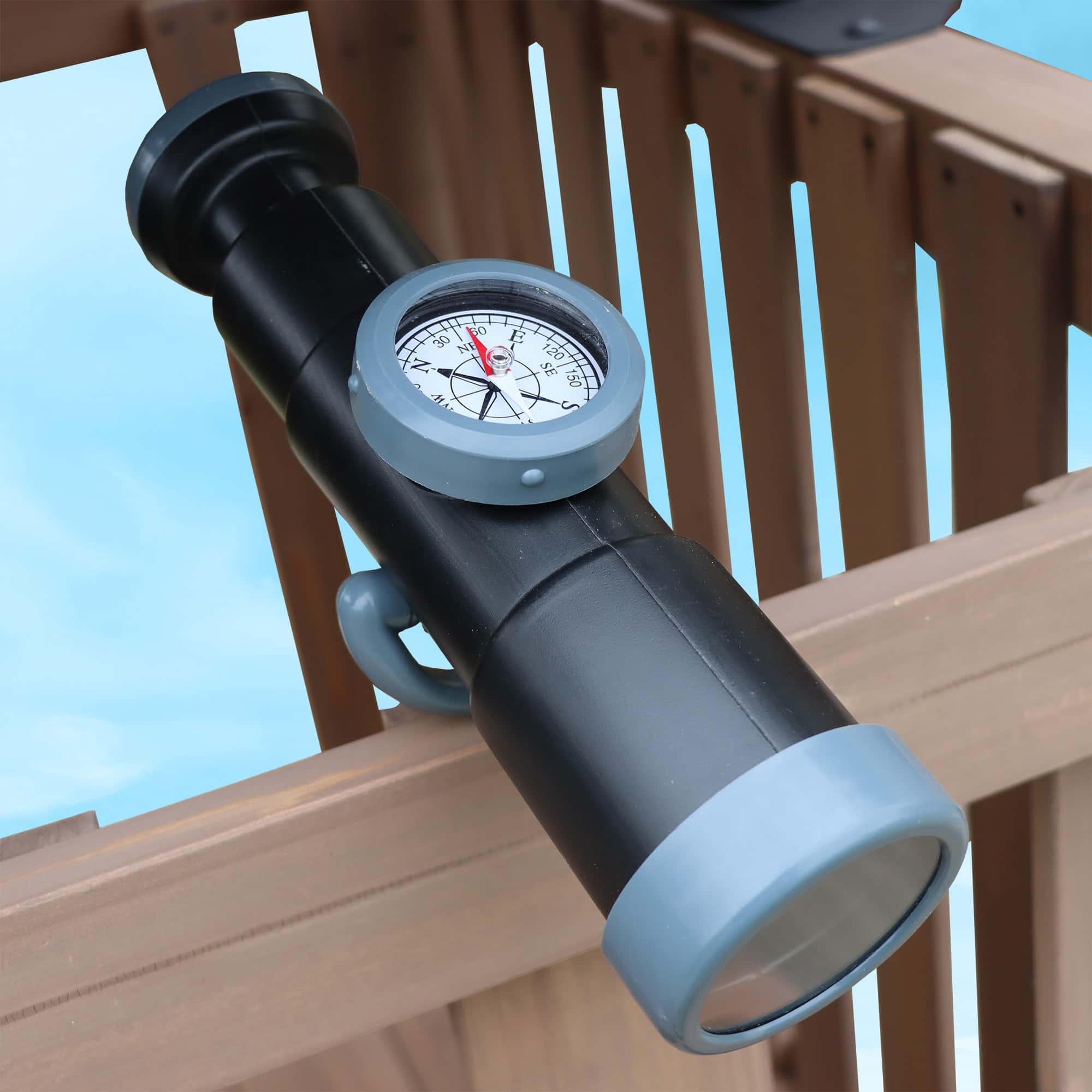The 4ft (1.2m) high upper clubhouse—complete with a telescope for endless sky-gazing and lookout adventures—creates the ultimate launch pad for imaginative play. Below, the charming lower clubhouse, featuring a premium door and window, offers a cosy hideaway perfect for young explorers. Beyond the two slides, children can scale a rock wall with a climbing rope, draw on a chalk wall, and steer their imaginations with the plastic steering wheel.