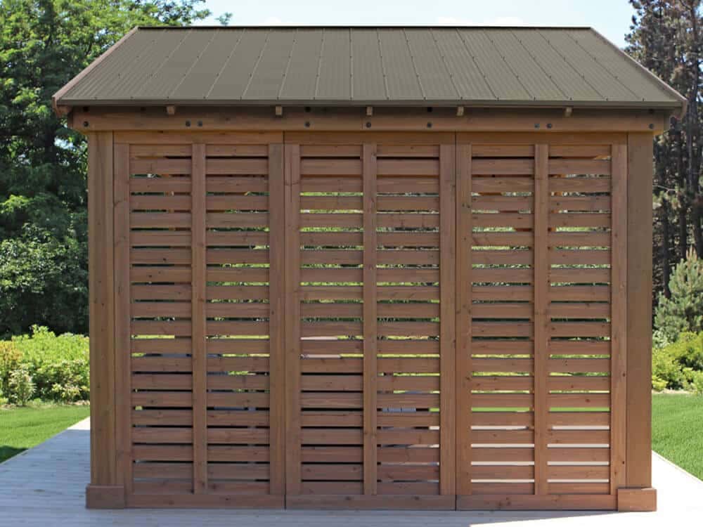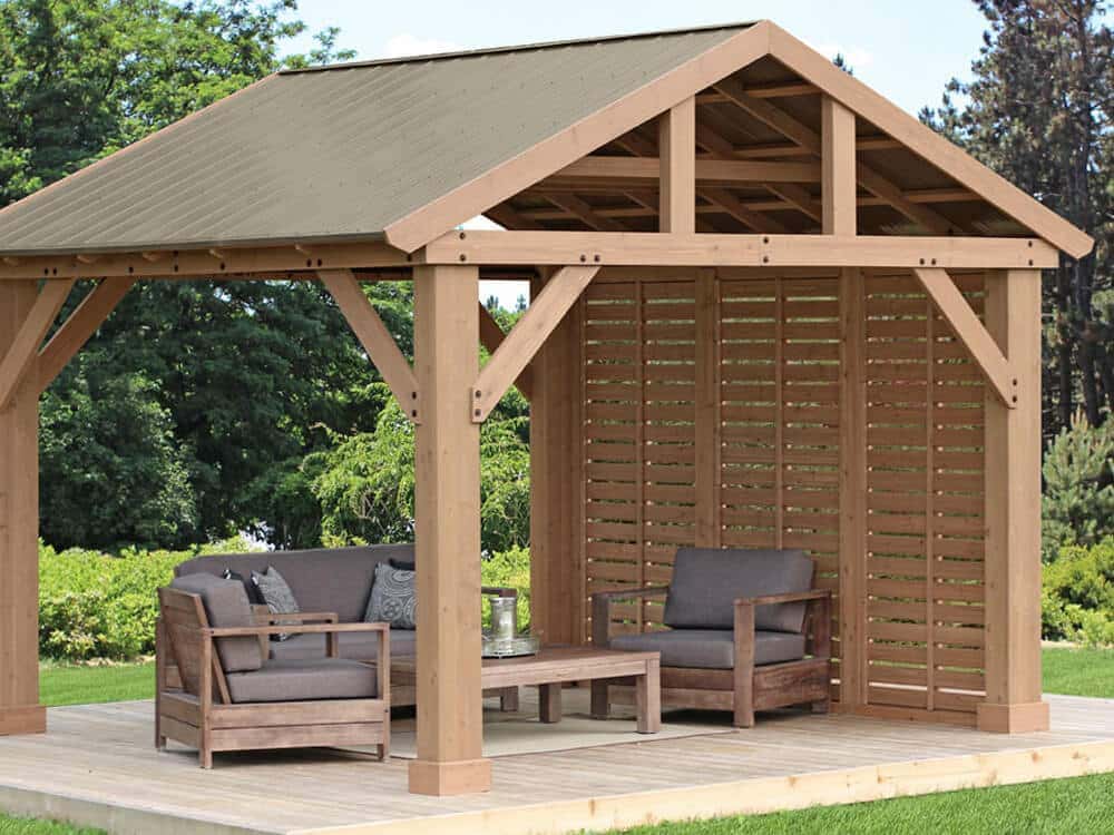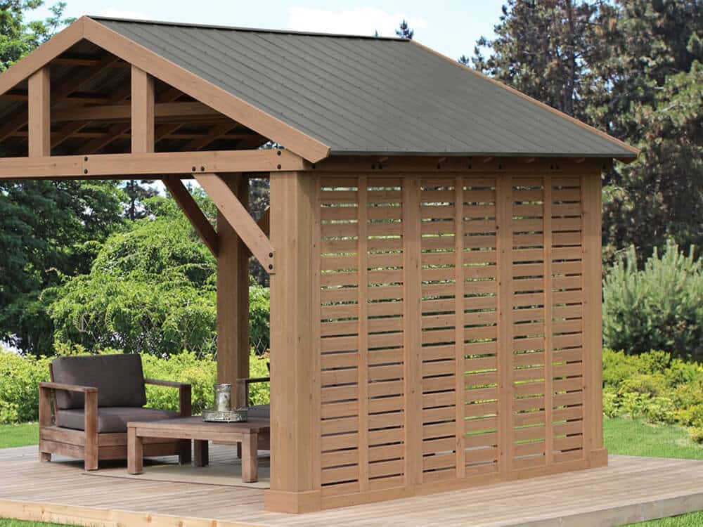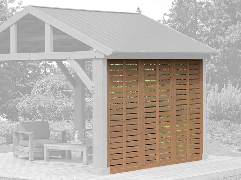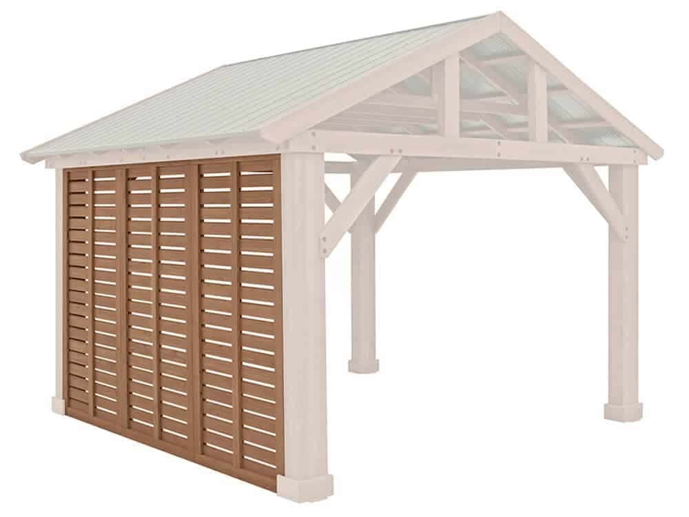 Our Pavilion Privacy Wall is the perfect complement to your existing Costco Yardsitry 14ft x 12ft Pavilion with Aluminium Roof. Whether you’re looking for some shade, protection from the wind, or a little privacy. Yardistry Direct’s unique and stylish privacy wall design has you covered. The Privacy Wall is built with 100% Cedar Lumber and finished in a Mocha Brown stain to match your Costco Yardistry Direct 14ft x 12ft Meridian perfectly!