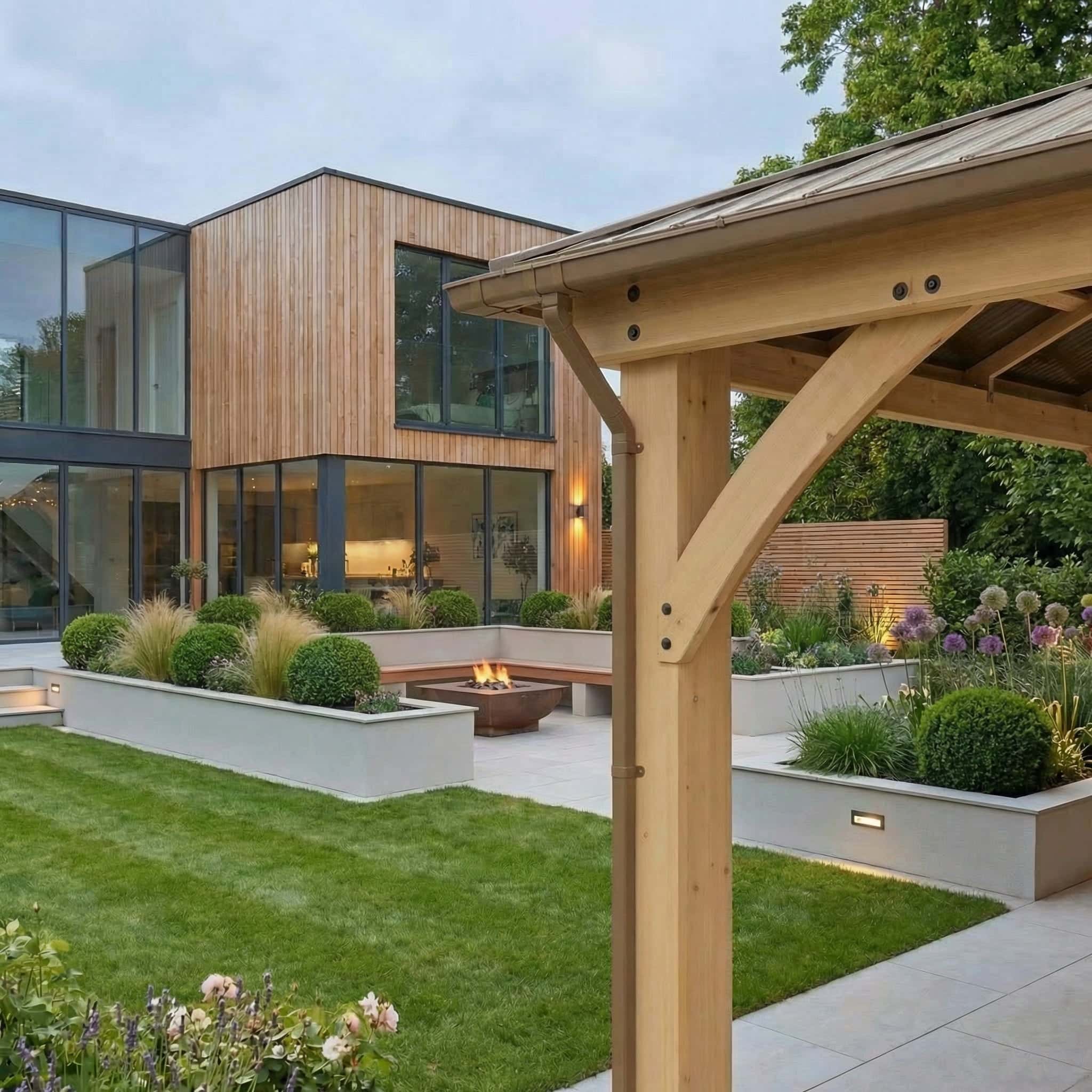 - Four downspouts help direct water run-off correctly