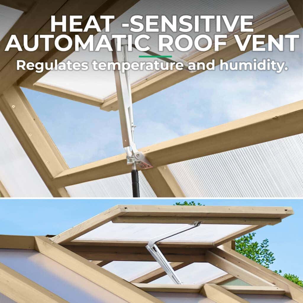 Greenhouses: Designed with automatic roof vent openers for optimal plant care.