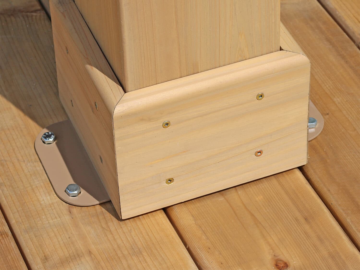 This anchoring question is often asked to our team, on live chat. It is a question that is vital to securing a successful build. Ultimately, it is essential to securely anchor a Yardistry Direct gazebo to the ground. Yardistry Direct include ground anchor brackets with all cedar gazebos and pavilions. Every kit includes 8 mounting plates (2 per post) for mounting to the base of the post. These are partially concealed by the decorative plinths.